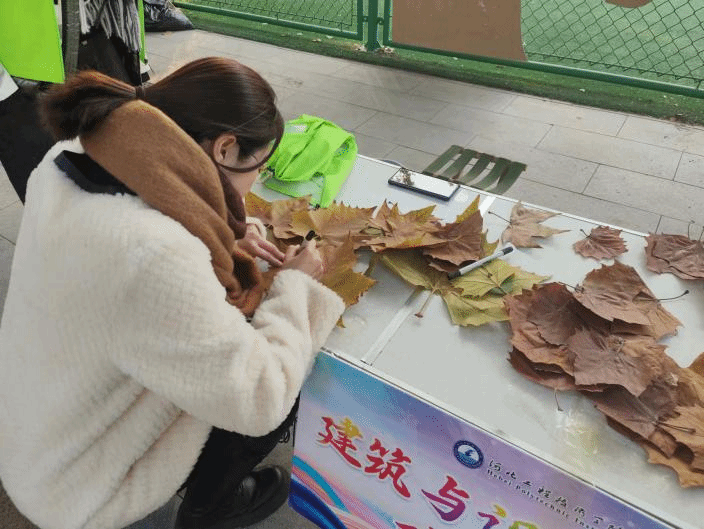落叶,这是大自然给我们的一份独特的馈赠,也是引导人们真切感受秋天的美好、亲近自然、探索自然奥秘的大好时机。为了激发大家对季节变化的探索欲望,让大家与大自然亲密接触,丰富其社会经验,beat365唯一官方网站暨建筑与设计学院2023年11月23日开展了首届落叶创意文化节,在建筑与设计学院社团联合会的组织的策划下,形态各异的落叶在17组参赛人员的设计和装饰下,变成了创意无限的作品,引得过路同学纷纷打卡,吸引人们的目光,传递出对于自然环境和生活的美好向往和热爱。进入霜降节气后,深秋景象明显,冷空气南下越来越频繁。