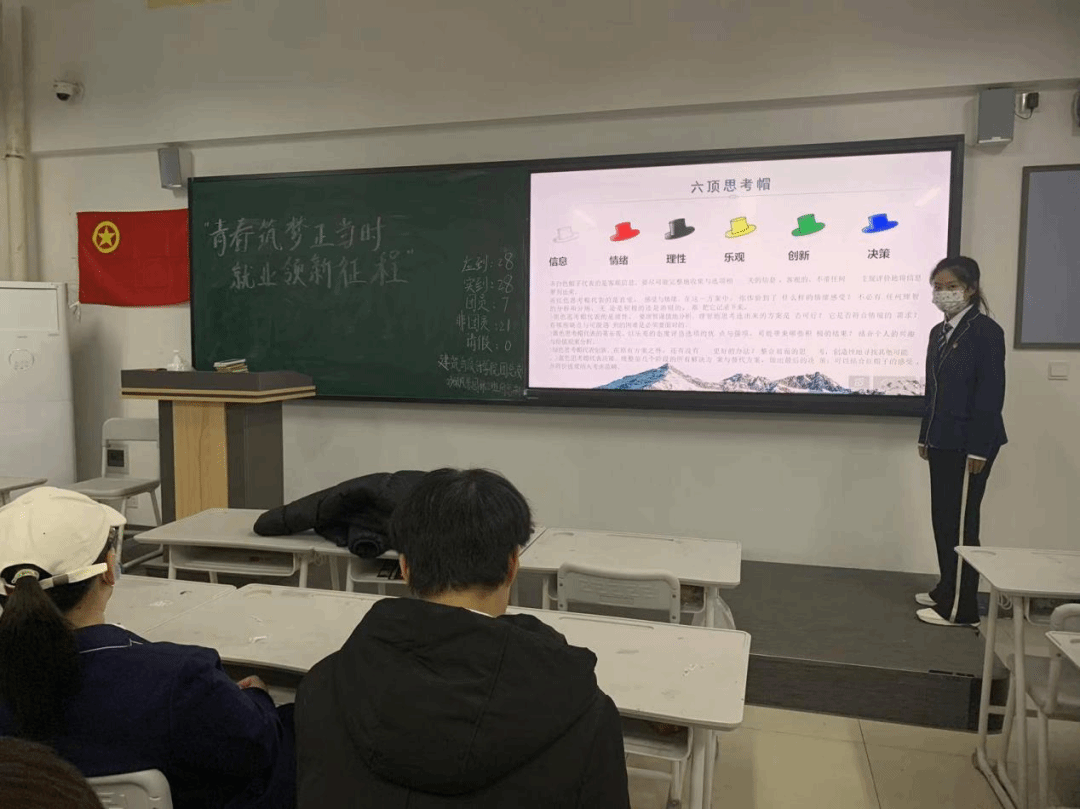 班会过程中对大学生的人格特长等问题进行了讨论,以便于大学生更客观的了解自己,协助大学生进行下一步的规划。班会指出并强调了三观对于职业生涯规划的形象,并对大学生的三观做出引导。帮助大学生更好的做出决策。