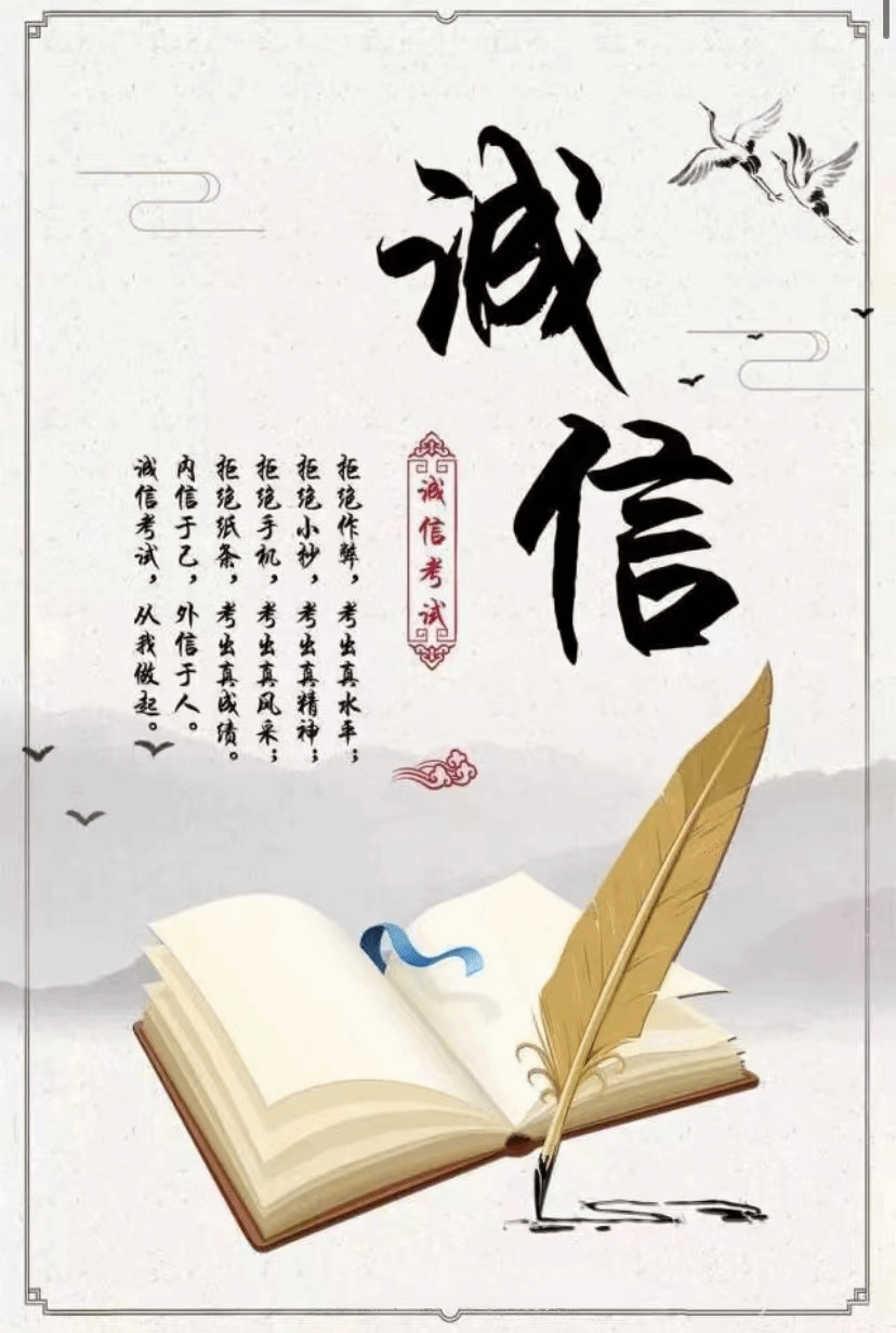 学以载道,诚至金开。诚信应考宣传活动,增强了同学们的诚信意识,培养了诚信待人、诚信处事、诚信立身的良好习惯,同时也激发了同学们的学习热情,促进了学院的学风建设。诚信自古有之,作为新时代的学生,诚信更是不可丢弃的品质。希望我院的学子们认真复习,用真才实学面对未来的机遇和挑战!在未来,我院将持续做好诚信教育,营造“人人讲诚信”的良好校园文化氛围,进一步提高学生的诚信意识和社会责任感,展现学子良好的道德风貌。