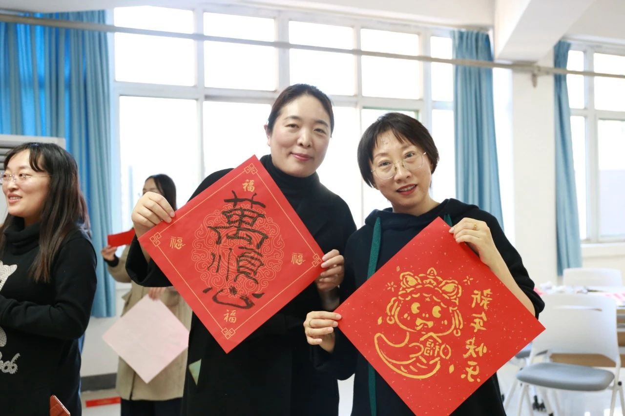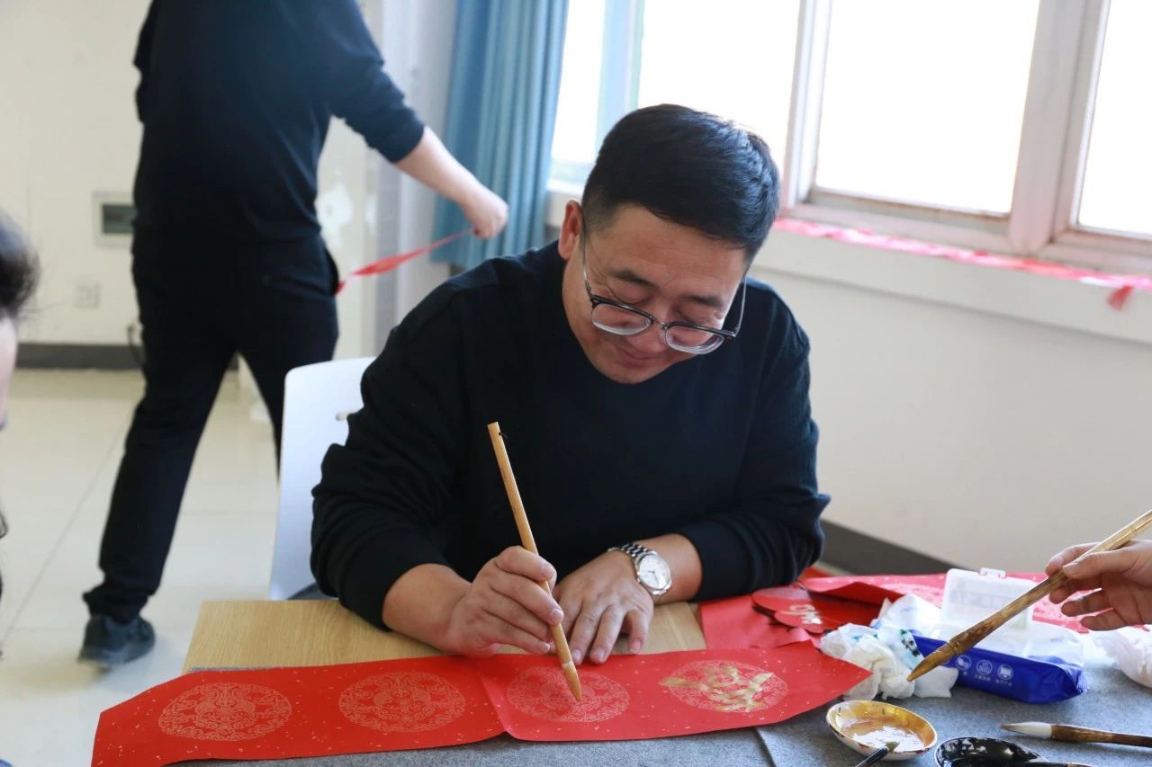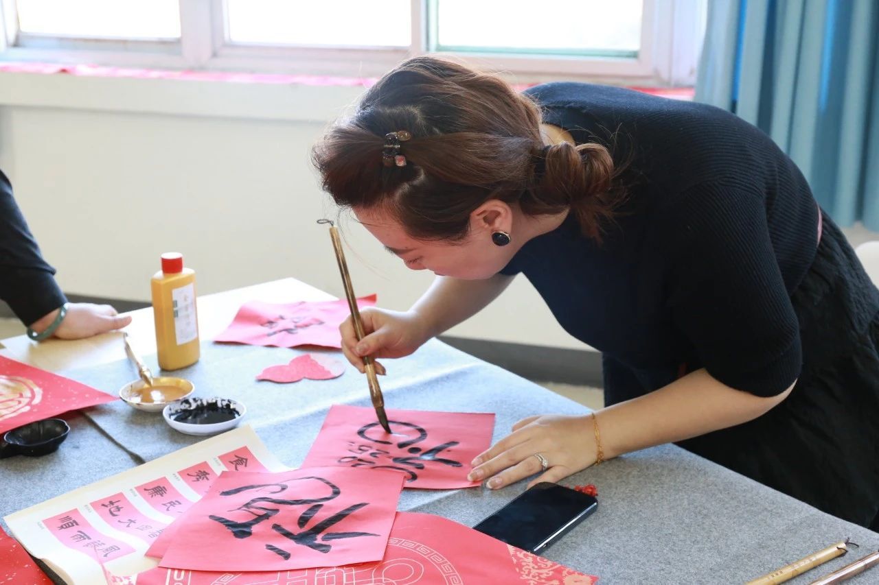 翰墨飘香庆新年,春联送福暖人心。活动现场,领导与教师们挽起衣袖、执笔蘸墨,书写一幅幅寓意吉祥、饱含深情的新春对联,为活动增添了一抹亮丽的色彩。写新年祝福语环节让人温情脉脉,暖人心扉。