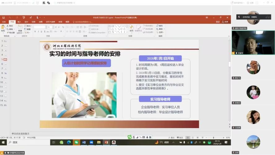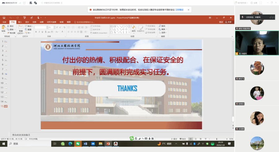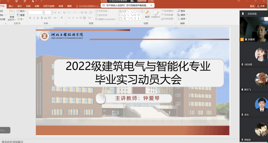 为确保2026届毕业生实习工作顺利开展,2026年1月8日晚8点,beat365唯一官方网站建筑电气与智能化专业通过腾讯会议(会议号:928100178)组织召开了2026届毕业生实习动员大会。会议由钟爱琴主任主持,建筑电气与智能化专业全体指导教师及大四学生参加。