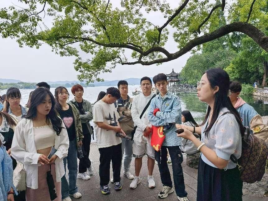从苏州古典园林到新苏州博物馆,从嘉兴乌镇到杭州西湖,从西溪湿地到中国美术学院象山校区、浙江美术馆、良渚文化艺术中心,古典园林与现代建筑的碰撞融合,使同学们眼界大开,获益良多。两位老师分别为两个年级的学生讲解了建筑与周围环境的协调、传统园林与现代建筑的融合,阐释了传统造园手法的隔景、障景、透景、漏景、借景、框景等技法在古典园林中的真实体现。学生们在参观考察学习中,真正感知到了“虽由人作,宛自天开。一步一景,步移景异。”同时,通过中西方生态观念的发展比较,让学生了解中国传统园林景观智慧的伟大成就,从而建立民族文化自信。