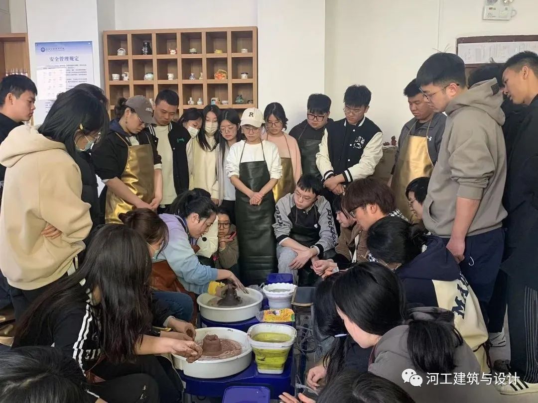 结束了陶瓷厂之旅后,在老师的带领下,我们又前往了以陶瓷为发展特色,结合旅游业与第三产业创新的陶瓷水镇,进行了更深层次的学习与研究。在这里,同学们亲自上手,在师傅们的引导与帮助下,感受到了泥土再手指缝隙间穿梭,又在机器的旋转与水的磨合中逐渐塑性,从一团没有形象的泥巴,肉眼可见变化为器皿的过程。
