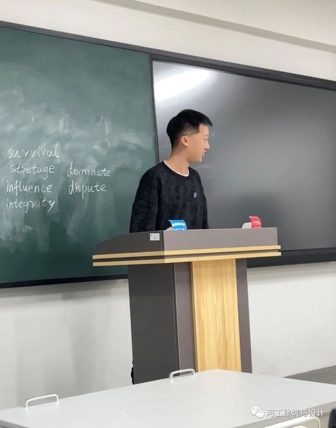 在这之后同学们都非常积极和热情,将整个班级的氛围带动了起来。接下来上台的这位同学在班级里担任学习委员一职,他经常颁布作业任务并收取同学们的作业,非常辛苦。他跟同学们讲解了作业对平时成绩的重要性,呼吁大家积极提交作业不要拖拉。同学们也都意识到了学委的不容易,纷纷表明会尽快提交作业。此刻,班级的凝聚力又得到了提升。