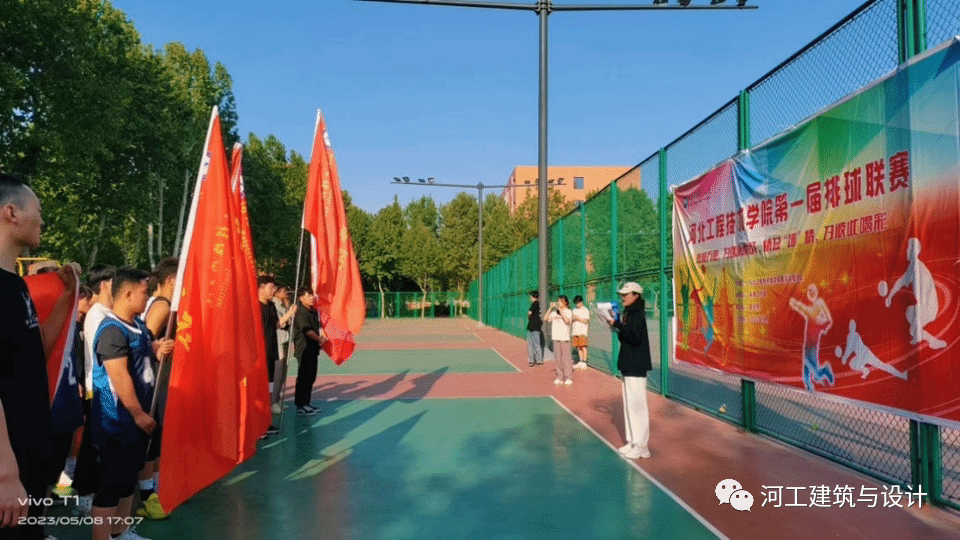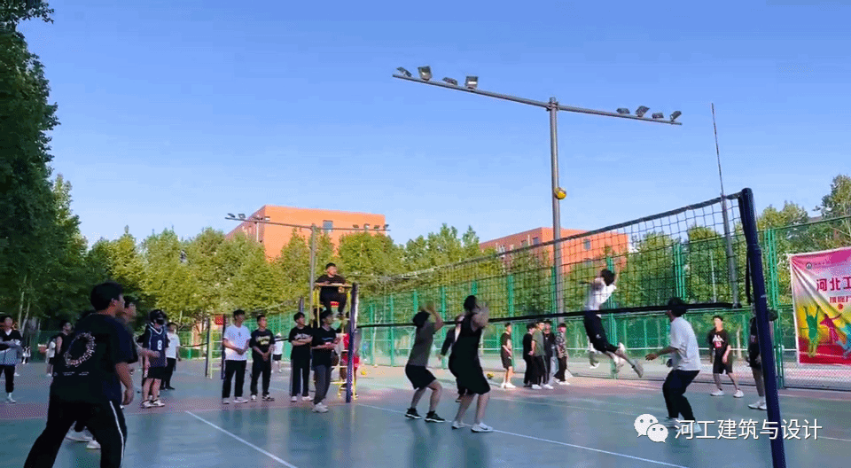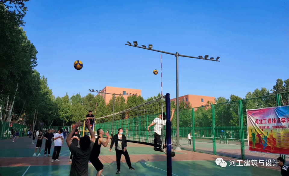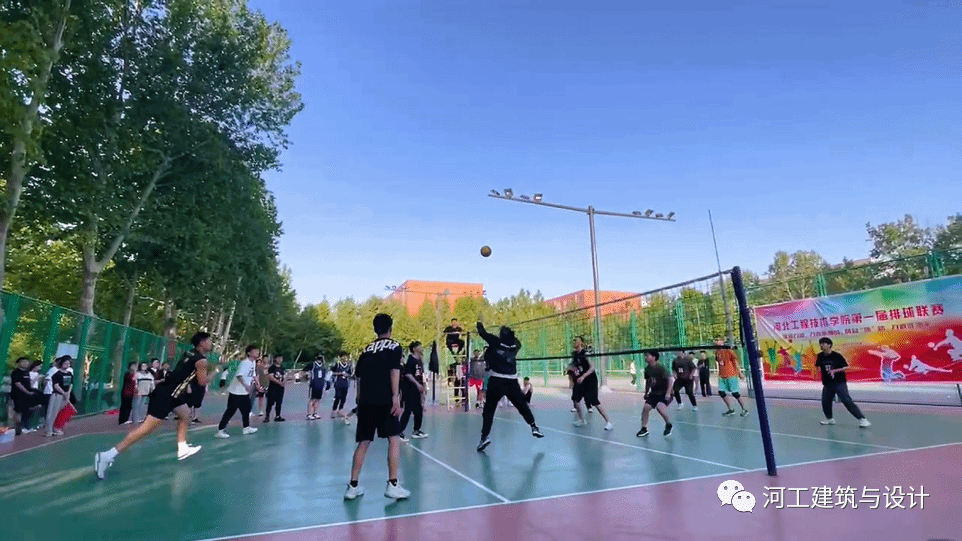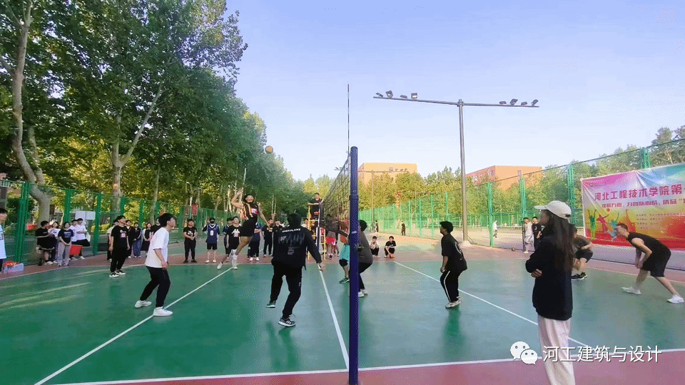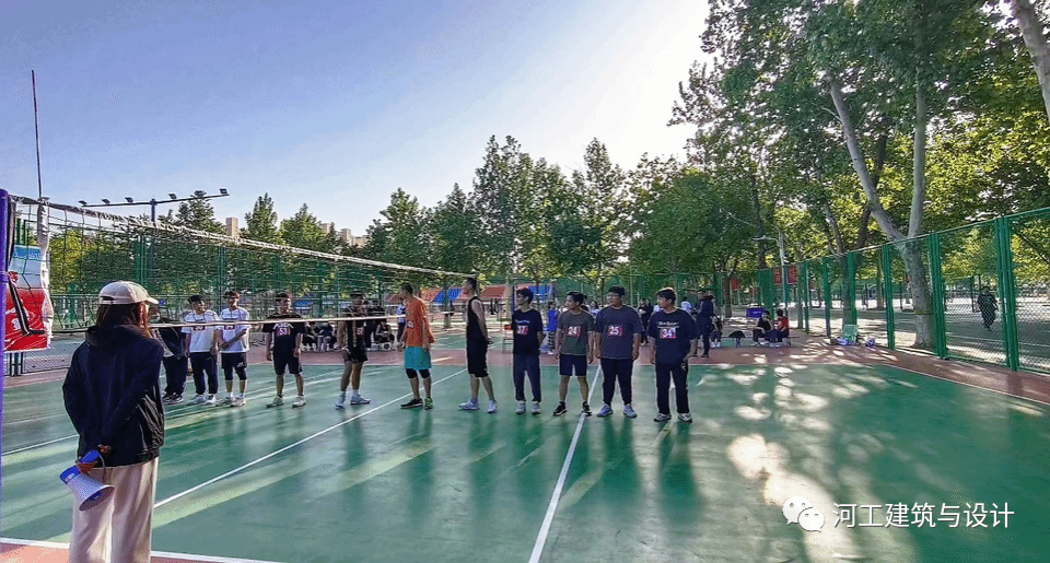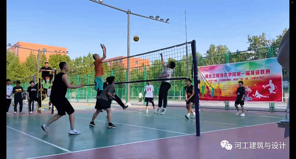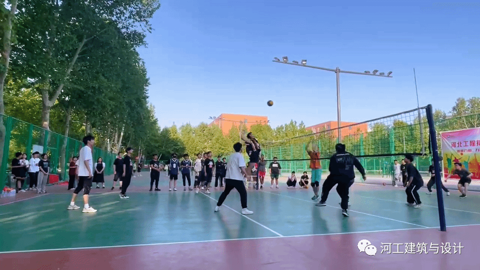 本次排球联赛第一场比赛为男子组,人工智能与大数据学院VS建筑与设计学院。