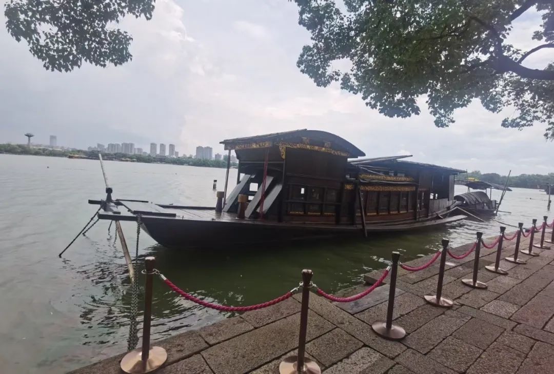 随后,实践队成员在会景园乘船前往湖心岛,经历中国共产党诞生历史的红船停靠在湖心岛旁,一艘画舫后带着一条用来接送一大代表的小船,据传当年南湖的游船已经在抗战时期绝迹了,如今停靠在岸边的是1959年在中央和省委指示下仿制的一条当年“一大”开会的游船。岸边,实践队成员近距离瞻仰了这条“一大”纪念船,体会革命先辈开天辟地、敢为人先的首创精神;坚定理想、百折不挠的奋斗精神;立党为公,忠诚为民的奉献精神。