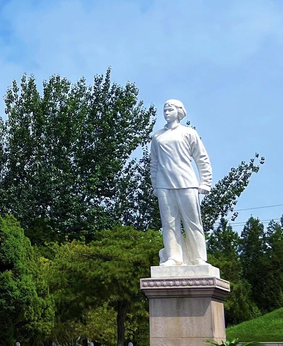 第一程“绘忆红色”实践团队来到山西省文水县的胡兰镇,在刘胡兰纪念馆前,“生的伟大,死的光荣”八个大字在阳光下熠熠生辉,这是毛主席在1947年3月下旬转战陕北的途中知晓刘胡兰同志英勇就义的事迹时,亲手提笔写下的八个大字;在讲解员的带领下,实践队员走进纪念馆,倾听革命先辈的英勇事迹,通过现场图片和视频展览,感受刘胡兰同志为共产主义远大理想勇于献身的革命精神,在为人民求得解放的革命道路上,未满15岁的她面对敌人的铡刀视死如归,发出了“怕死不当共产党”的铿锵誓言,用鲜血和生命铸就了光照千秋的“信念坚定、敢于斗争、坚贞不屈、不怕牺牲”的刘胡兰精神。