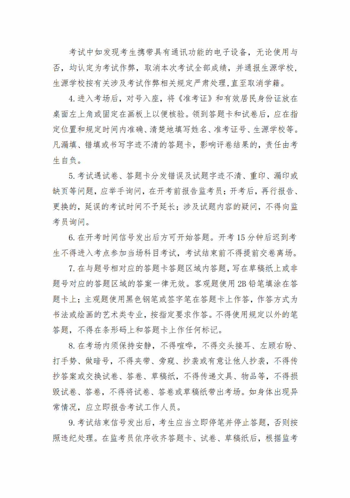 1.充分知晓手机作弊严重后果。考生在考试中随身携带手机等具有发送或者接收信息功能的设备,无论使用与否,均认定为考试作弊,取消全部成绩,并通报生源学校,生源学校按有关涉及考试作弊相关规定严肃处理,直至取消学籍。