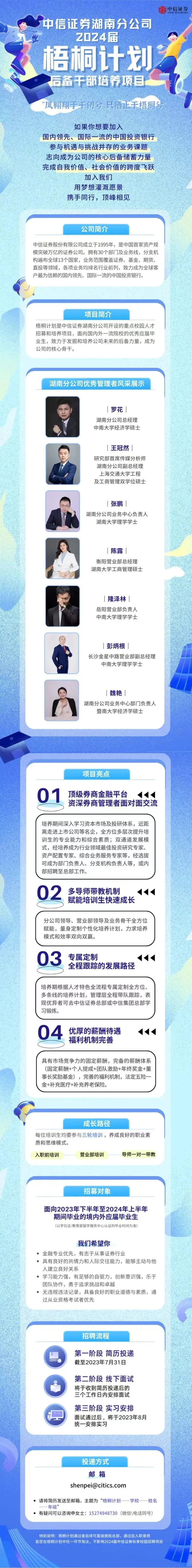 「招聘公告」中信证券湖南分公司2024届梧桐计划后备干部培养项目