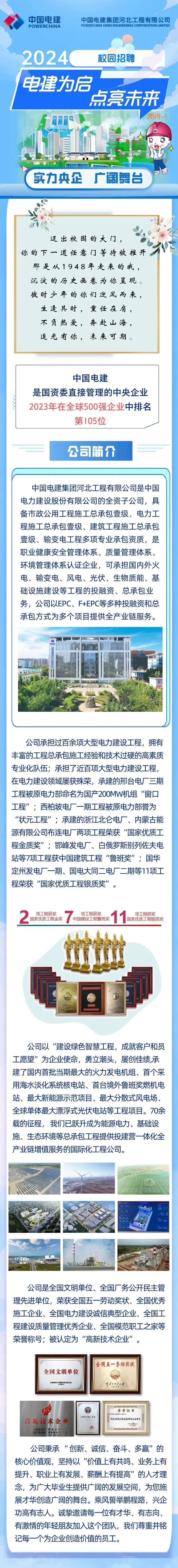 「招聘公告」中国电建集团河北工程有限公司2024校园招聘正式启动