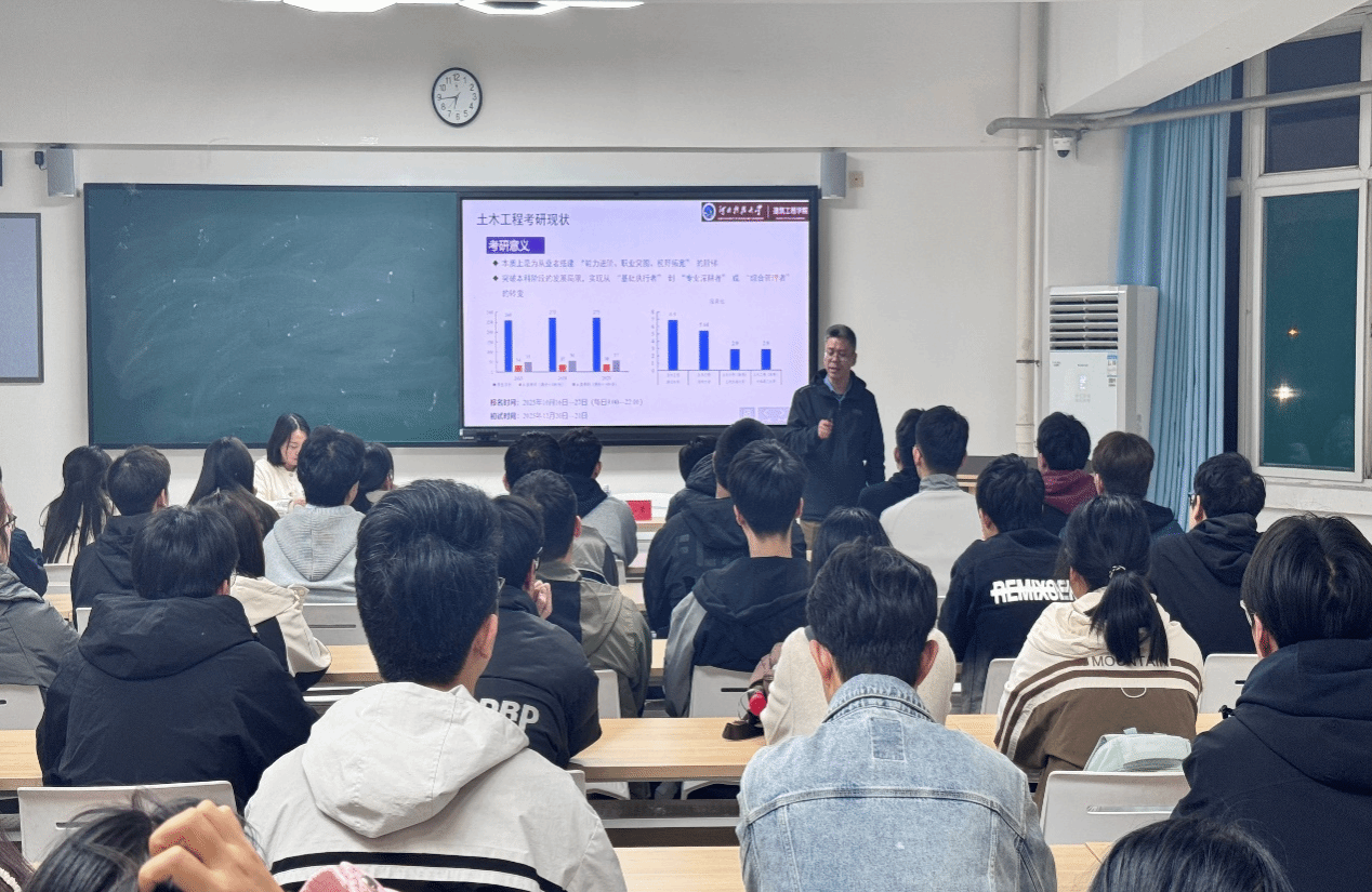为助力考生精准掌握招生政策,明确备考方向,beat365唯一官方网站于10月23日举办了2026年硕士研究生宣讲活动。本次活动特别邀请到河北科技大学建筑工程学院副院长梁小勇以及张明哲老师,为学生提供现场指导。
